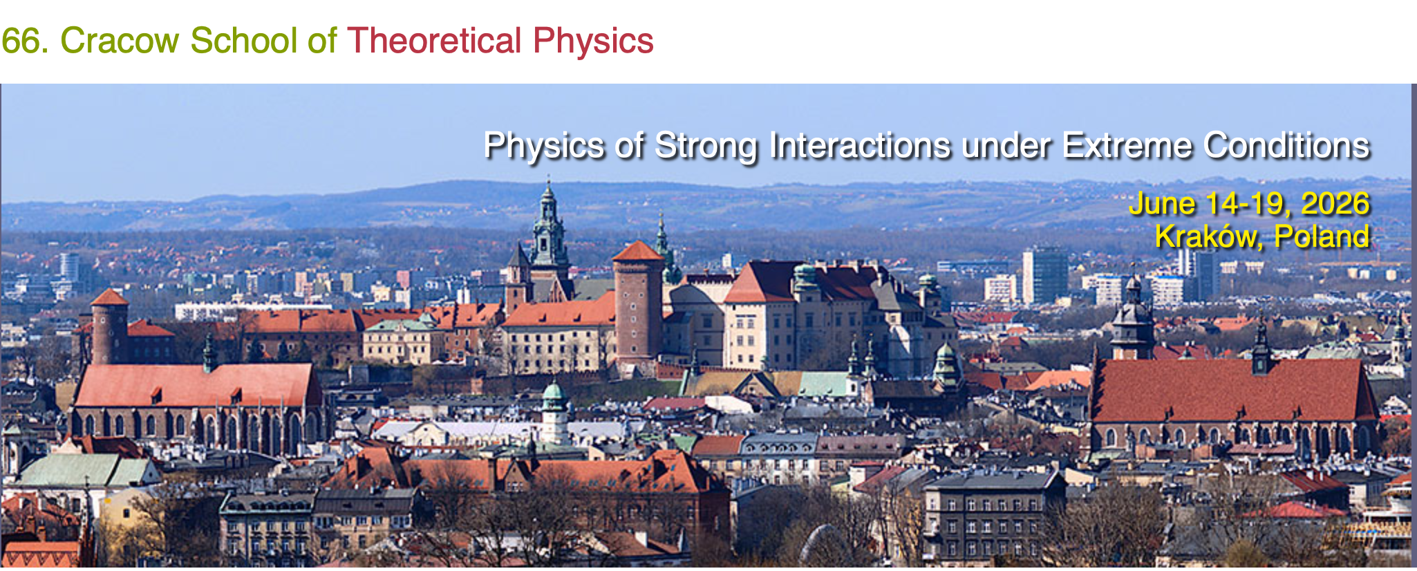 W dniach 14-19 czerwca 2026 roku w Krakowie odbędzie się 66. Krakowska Szkoła Fizyki Teoretycznej pt. ,,Physics of Strong Interactions under Extreme Conditions".
