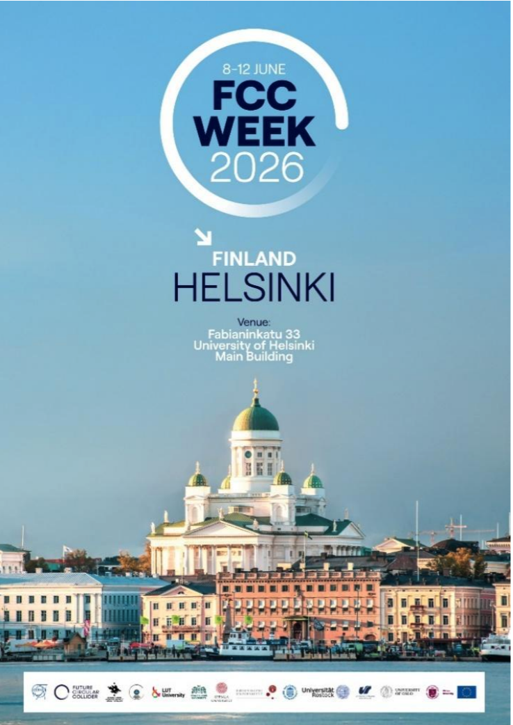 XII Konferencja dotycząca Przyszłego Zderzacza Kołowego (Future Cirlular Collider - FCC) ,,FCC Week 2026" odbędzie się w dniach 8-12 czerwca 2026 roku w Helsinkach, Finlandia.