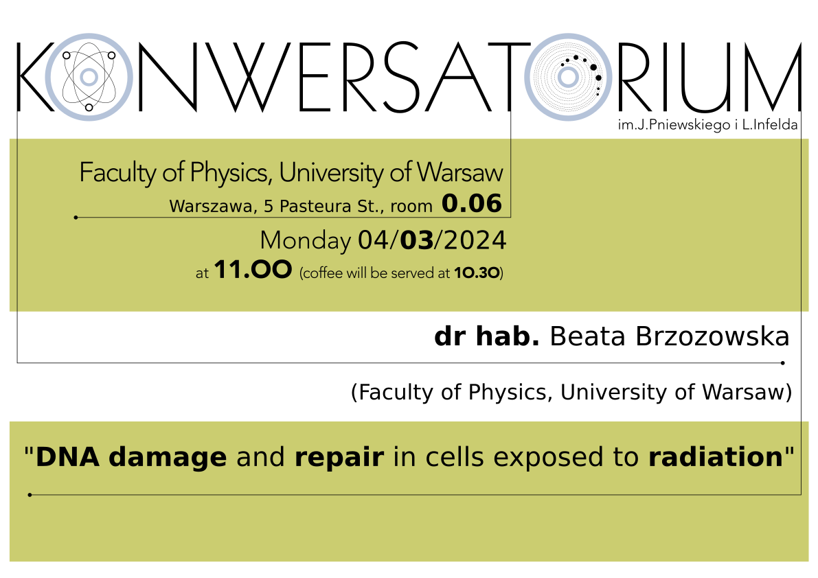w poniedziałek 4 marca 2024 r. o godz 11.00 w sali 0.06 odbędzie się Konwersatorium im. Jerzego Pniewskiego i Leopolda Infelda Wydziału Fizyki UW.